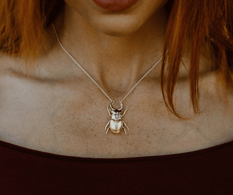 There's a deeper symbolism at play here too – the stag beetle, often associated with European religious culture, symbolizes the triumph of good over evil. From ancient murals to modern sculptures, the stag beetle's image has endured as a testament to resilience and transformation. And with our three-tone necklace, we pay homage to this timeless symbol of strength and rebirth.