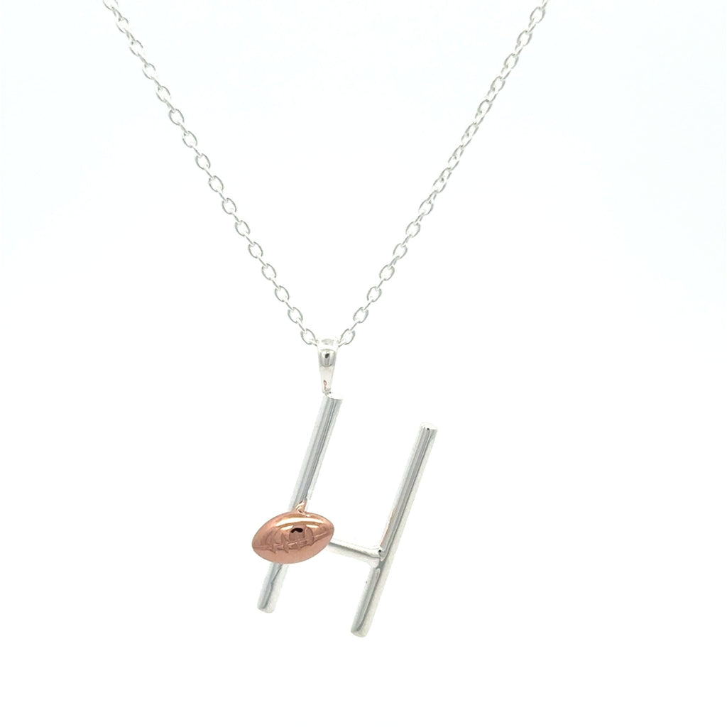 We love this celebration of rugby in our new sterling Silver Rugby Necklace, with the ball highlighted in 18ct Rose Gold vermeil, and the posts in high shine sterling silver. A must have for any lady rugby fan or player. What a thoughtful gift this will make for a daughter, granddaughter, partner or friend.