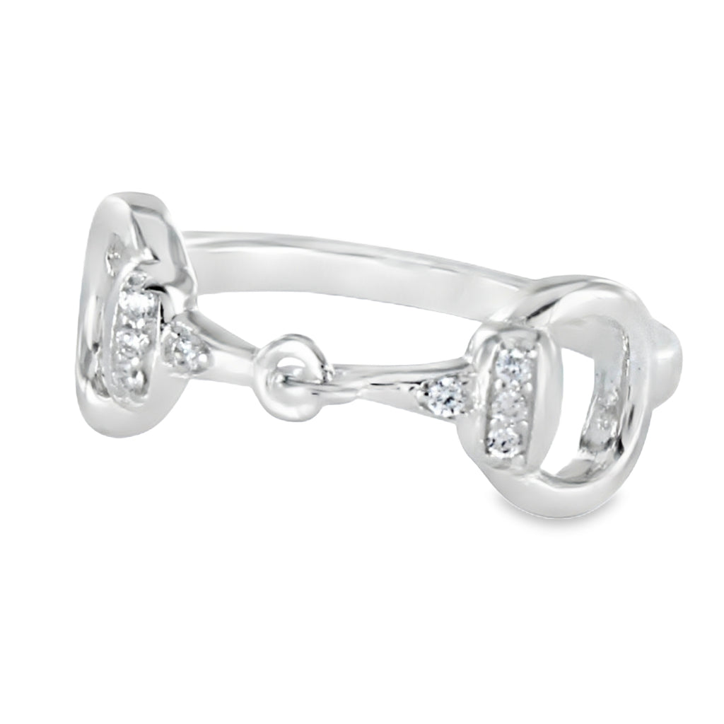Our very pretty and eye catching Sterling Silver Pavé Snaffle Ring is a lovely equestrian piece. The ring has a very reflective high shine finish and the central snaffle detail is set with sparkling Pavé stones.