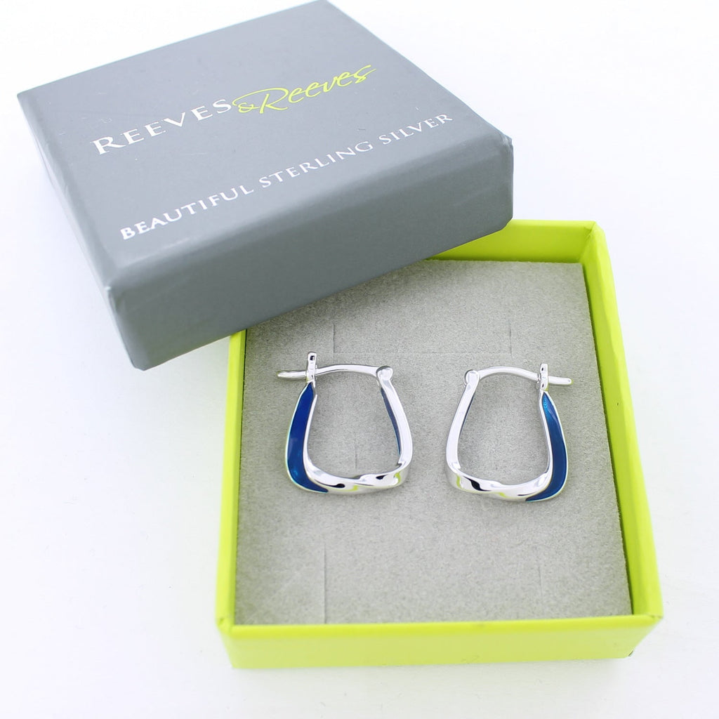 Contemporary and stylish, our Enamel Edge Hoops add a pop of colour to your everyday. The rectangular shape gives a modern and geometric look, with the pop of bright blue enamel colour adding a bold touch to any outfit!