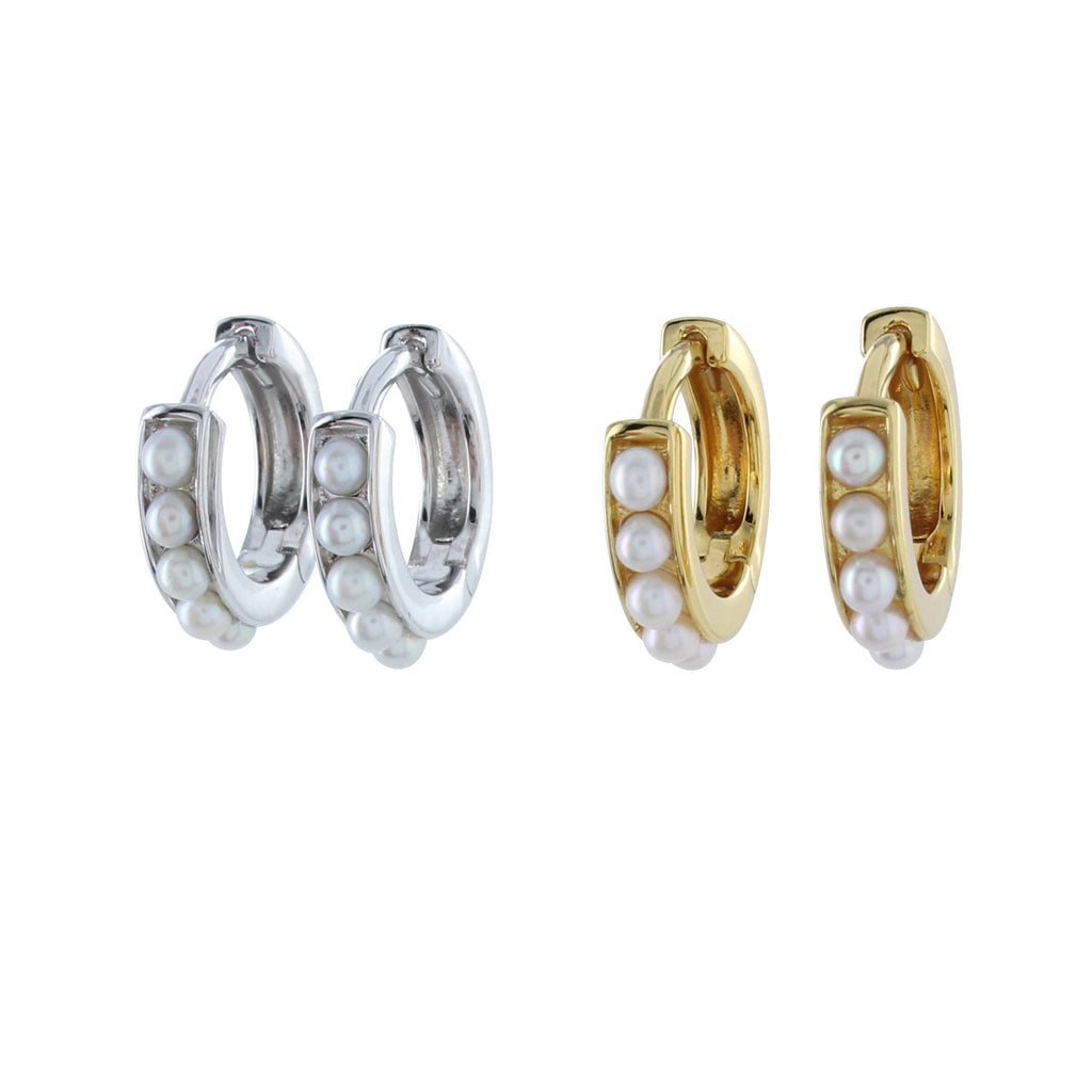 Our Pearl Huggies are pretty and stylish. In Sterling Silver or with 18ct gold plate finish, the sleek huggies are finished with five pearls set in the front, adding a layer of luxury to any outfit. The Huggies are the perfect size to wear everyday, and also great to form a stack with multiple piercings!